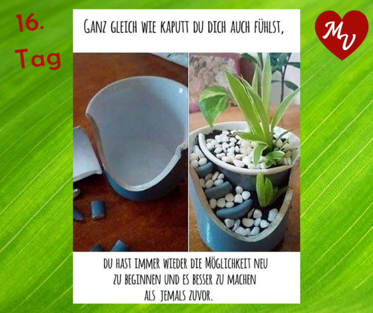 Das wir JEDEM, auf dem ersten Blick negativen Ereignis, ab sofort einen positiven „Wer weiß, wozu es gut ist“ – Aufkleber verpassen, unser Lächeln 🙂 aufsetzen und bei einer Tasse Tee ☕ abwarten, welche Überraschung sich Gott / das Universum diesmal für uns ausgedacht hat. 🙏🍀💖